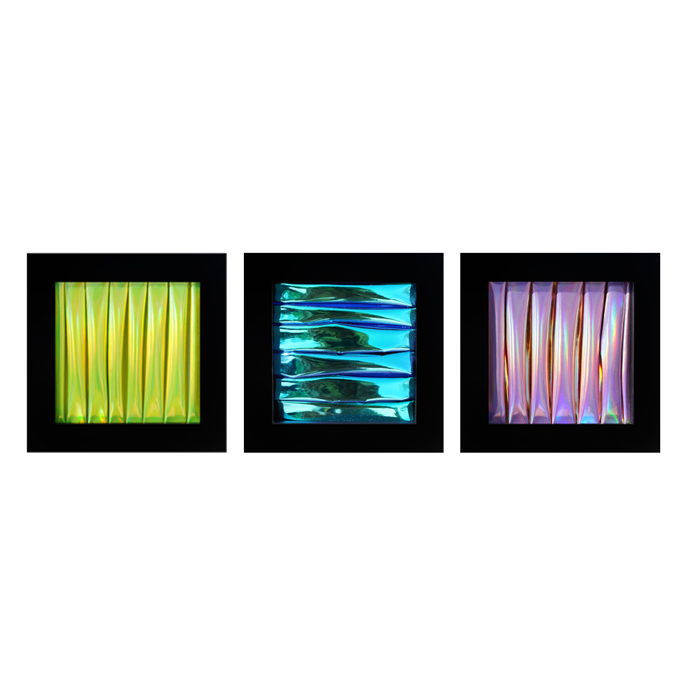 Artist: Autumn Mae Crocker Medium: Stretched vinyl on wooden frame Size: 5x5" Untitled I, II,...