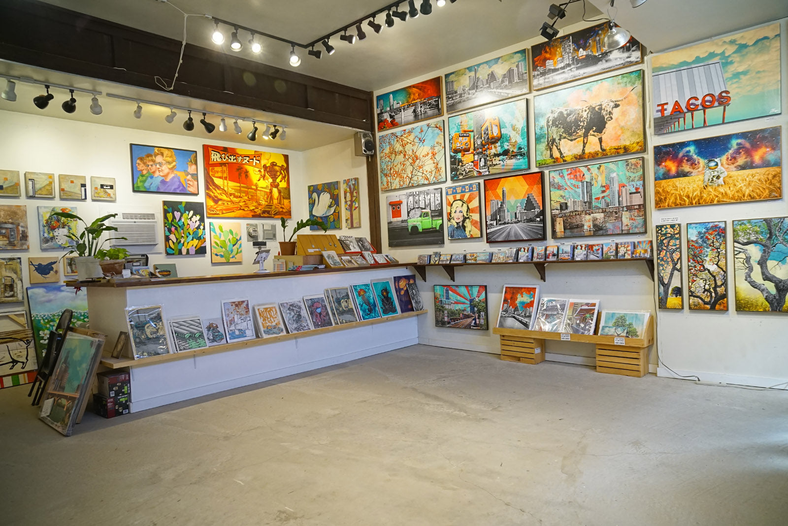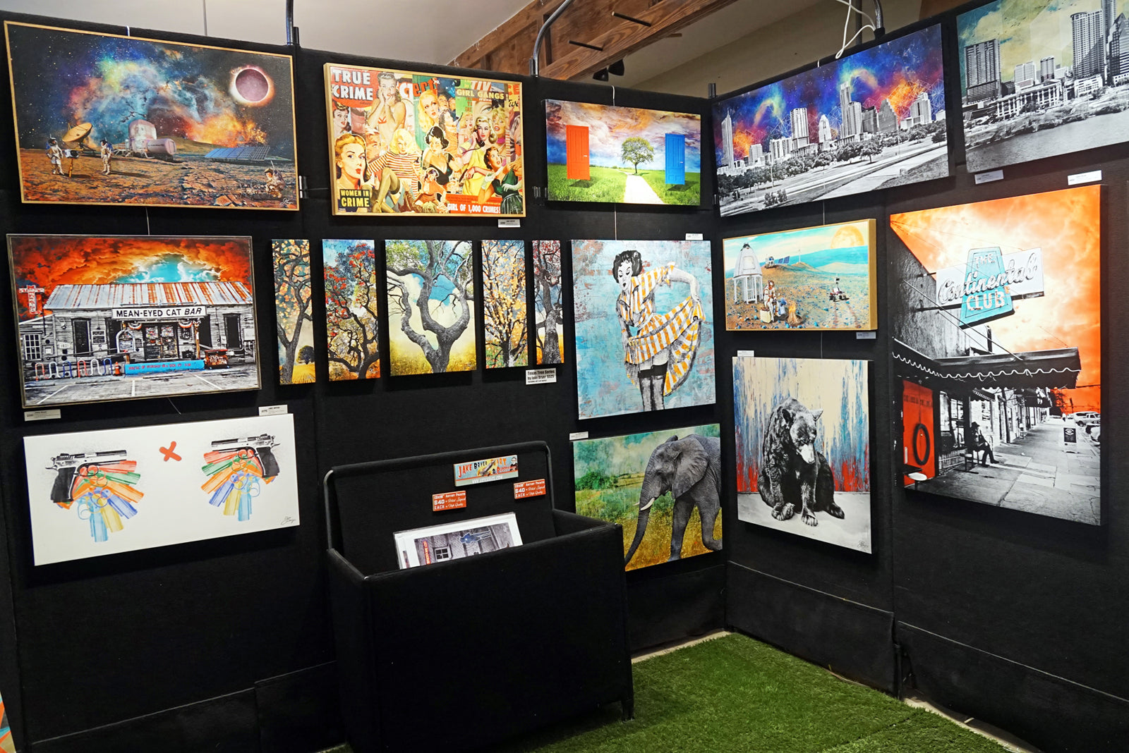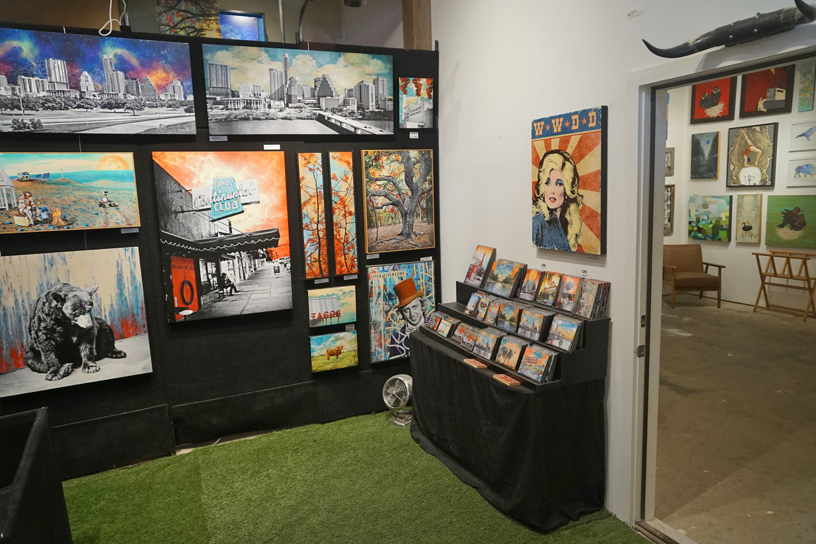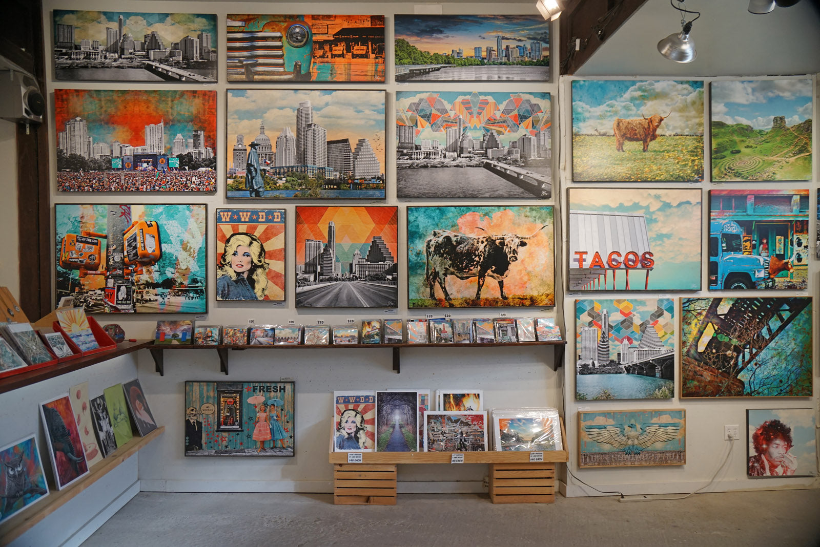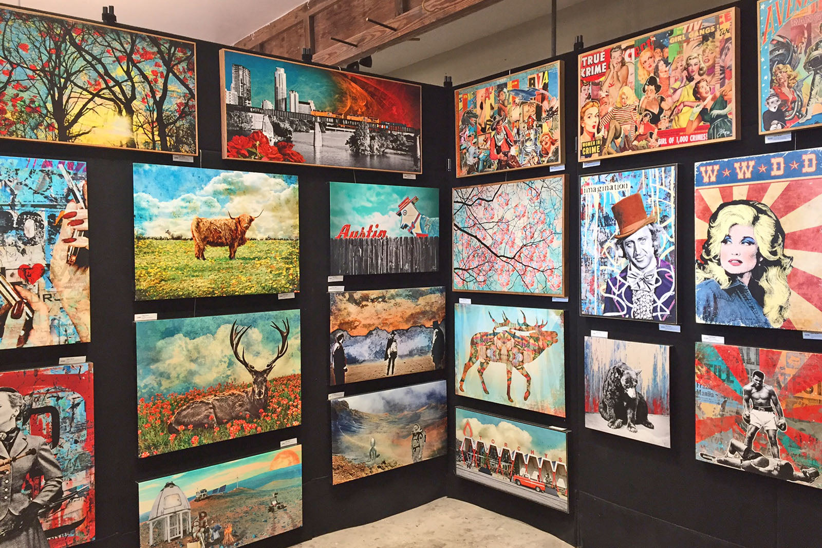 Welcome to Jake Bryer's art display gallery. Here you can find actual photos of Bryer's art as displayed at Austin Art Garage, public events and businesses around Austin including some highlights of his career and accomplishments. For questions about custom framing options, please contact Jake directly at jake@artgarage.com.
