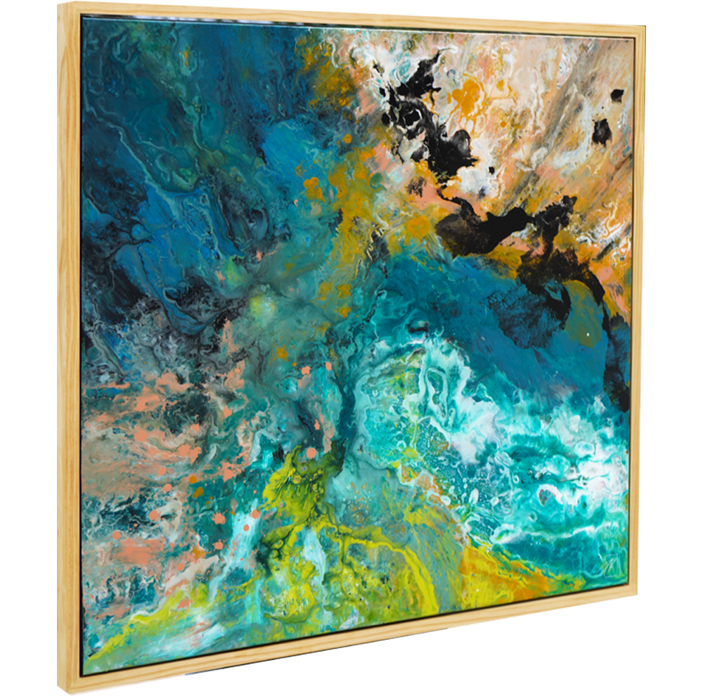 • Medium: Acrylic on canvas, custom floater frame